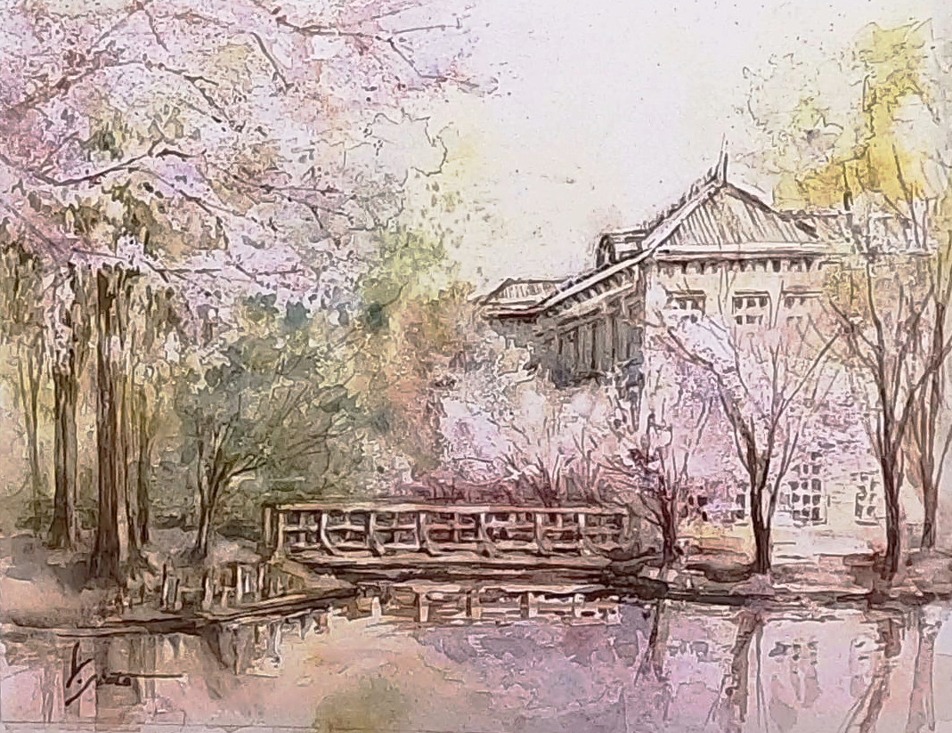 一足早く桜の風景を描いてみました 投稿日時: 2026年3月1日 投稿者: yukiko 返信 去年の秋に撮った写真を元に桜の風景を 描いてみました。 いつもの岡山県総合グランド、クラブハウス 横の池の景色です。 今回はクラブハウスの建物を入れて写実的に 描きました。