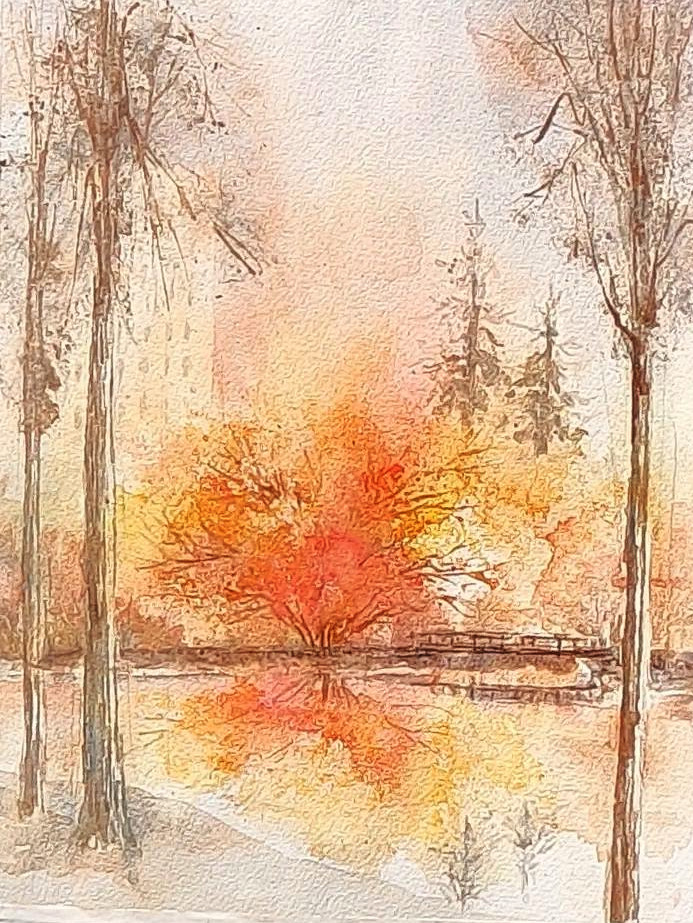 秋の写生会で描きました。 投稿日時: 2025年11月1日 投稿者: yukiko 返信 写生日和の気持ちの良い一日になりました。 いつもの場所なので、今回は縦構図で 描いてみました。もみじが少し色づいて いるくらいでしたが、絵の中は紅葉の 盛りにしました。